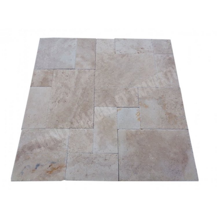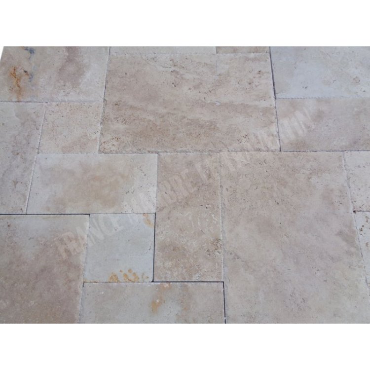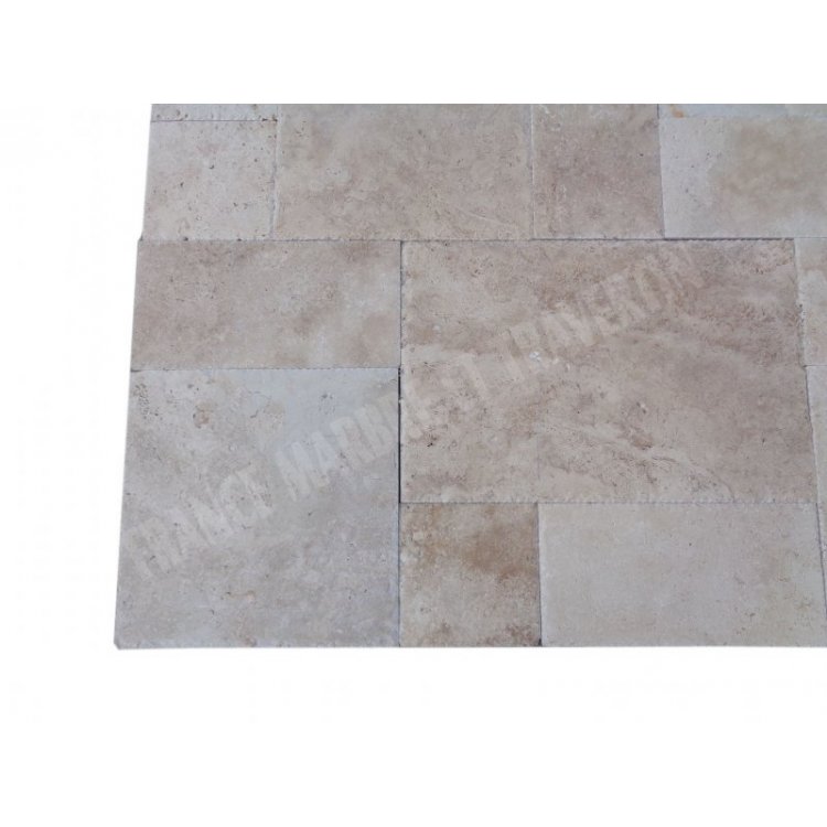 Travertin Classique Beige Big Opus Romain Dimension : 30x30 - 30x60 - 60x60 - 60x90 cm Épaisseur : 1,5 cm Finition : Brossé & Patiné
