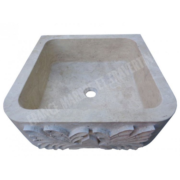 Travertin Beige Nuance Evier avec Motif 50x50 cm