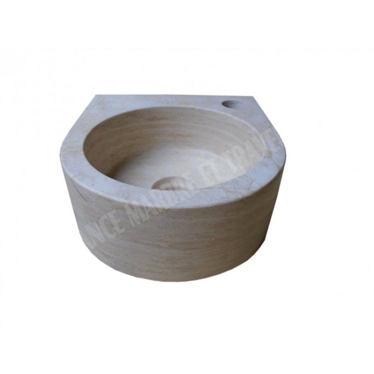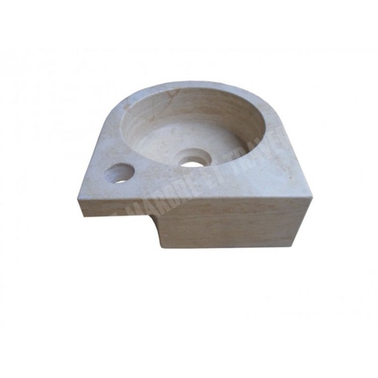 Travertin Classique Beige Vasque Lave Main Petit Angle 26x28 cm