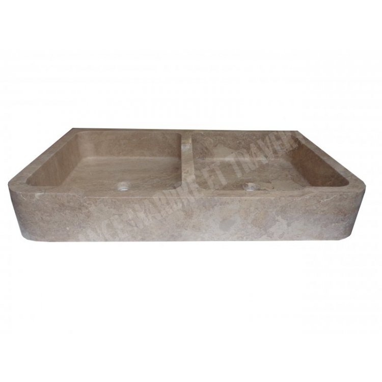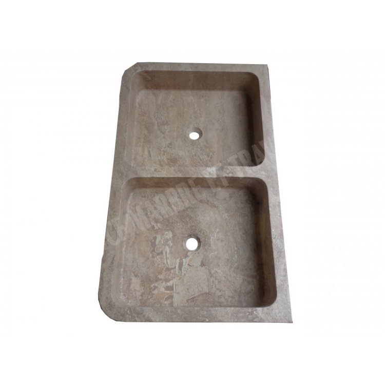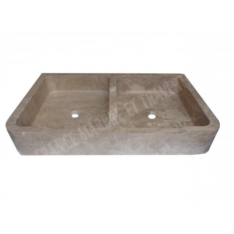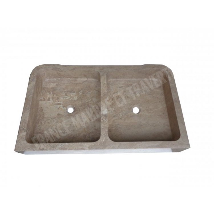 Travertin Noce Évier 2 Bac 100x60 cm