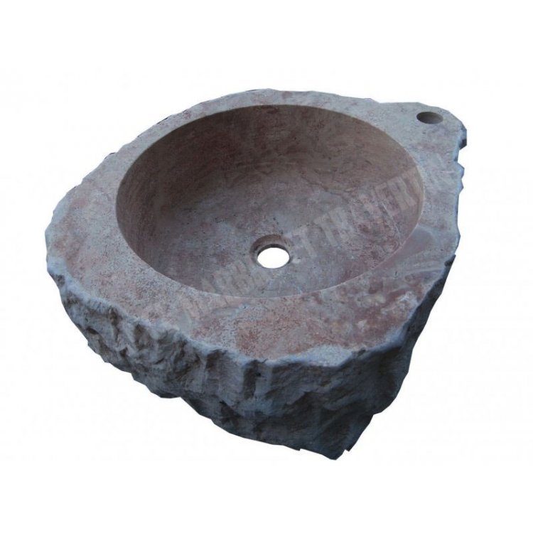 Travertin Rose Rouge Vasque Lave Main Angle Éclate 45x45 cm