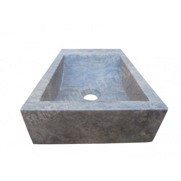 Travertin Gris Silver Vasque Lave Main Rectangulaire 40x26 cm