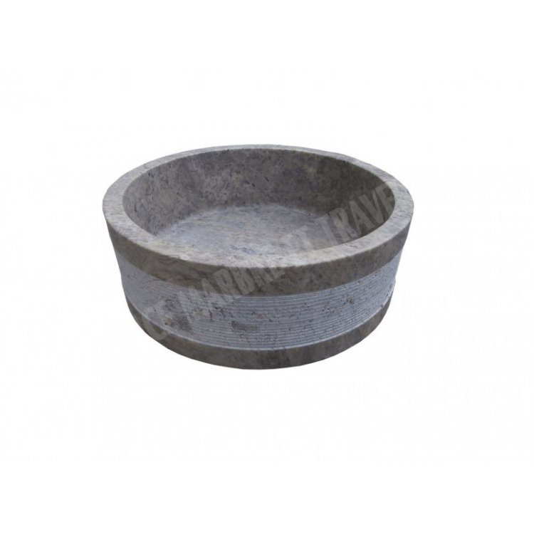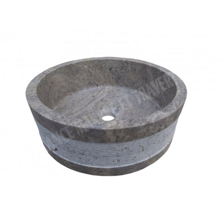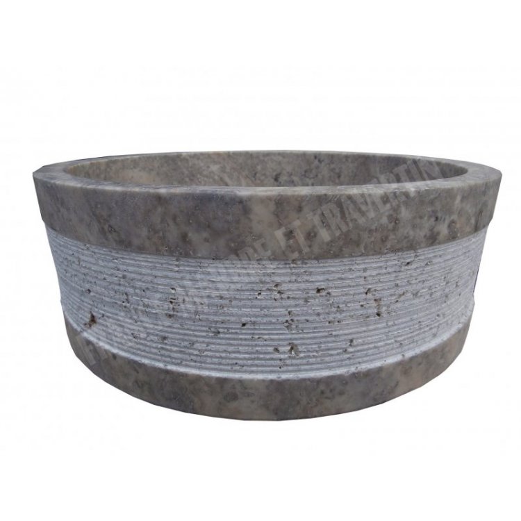 Travertin Gris Silver Vasque Modèle 2 Cylindre Strié