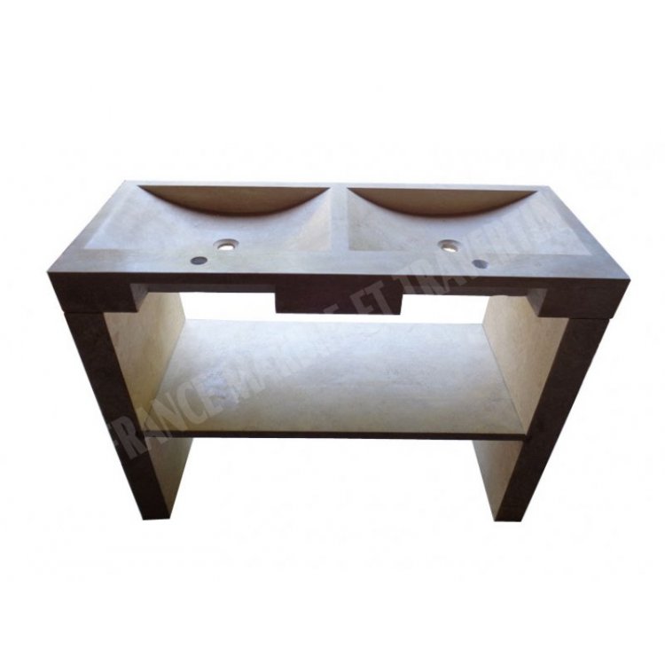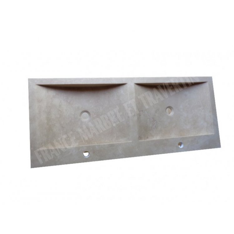 Travertin Beige Nuance Évier Meuble 2 Bacs