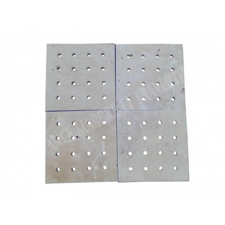 Travertin Classique Grille Siphon Perforé 28x28 cm