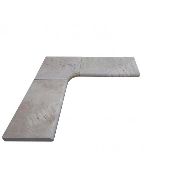 Travertin Classique Beige Margelle de Piscine Angle Rentrant 43x43 cm