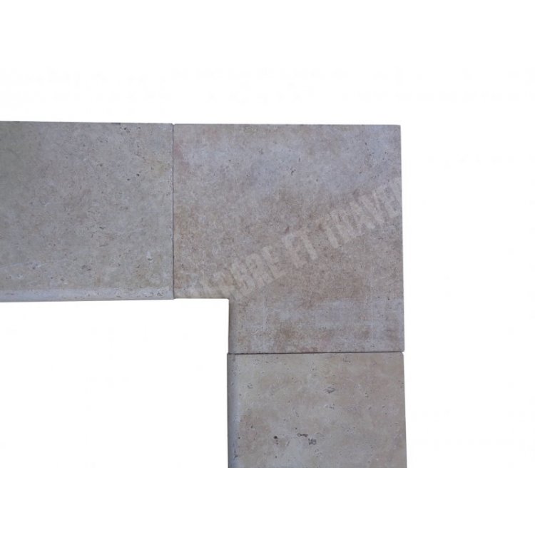 Travertin Classique Beige Margelle de Piscine Angle Rentrant 43x43 cm