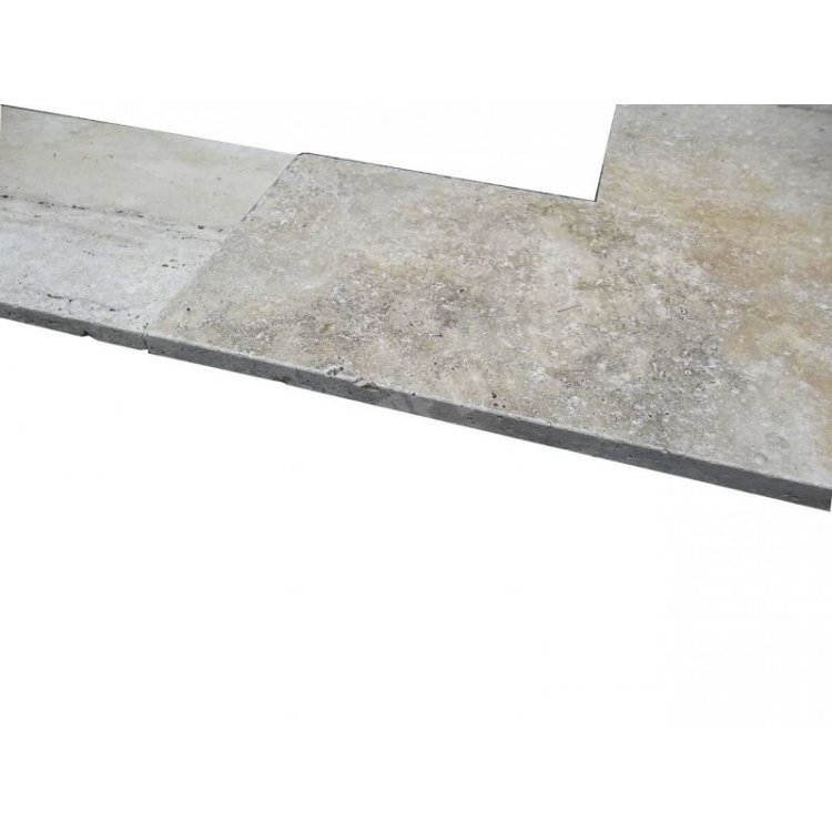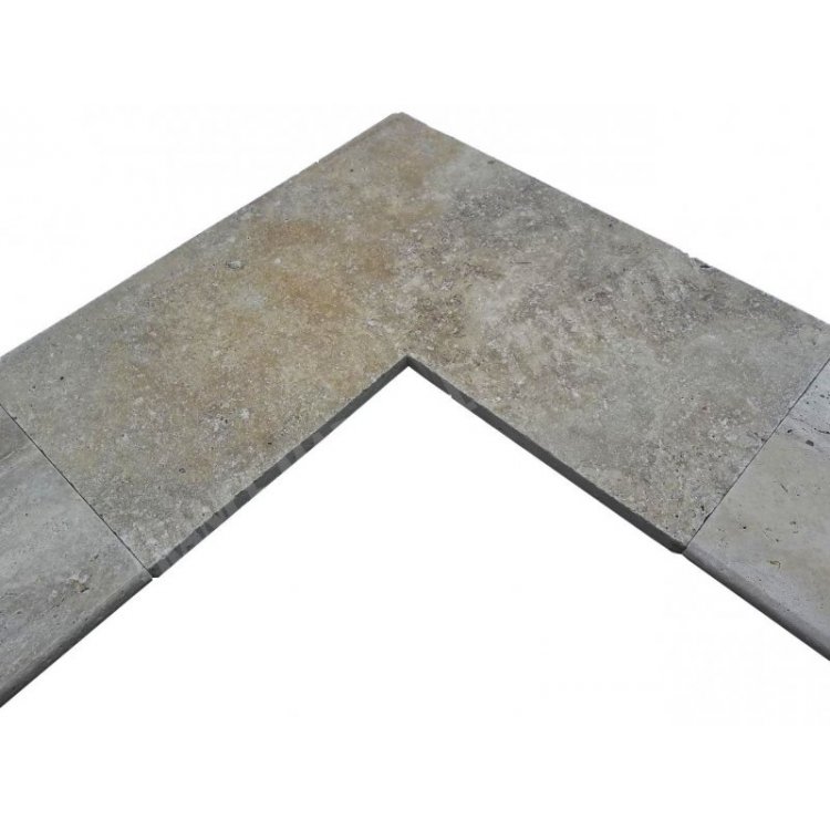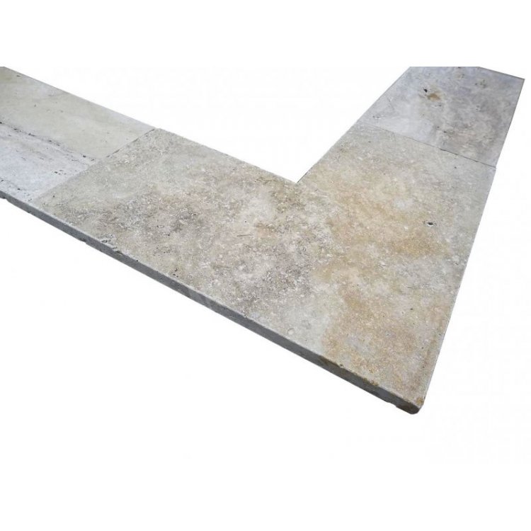 Travertin Classique Beige Margelle de Piscine Angle Sortrant 61x61 cm Modèle: 1A Arrondi Pour Margelle Droit 30,5 cm