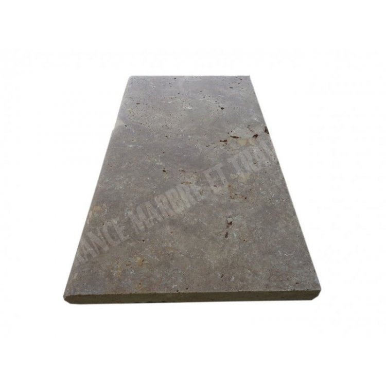 Travertin Noce Marron Margelle de Piscine Bord Arrondi 33x61 cm