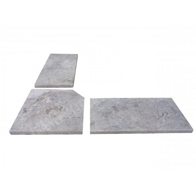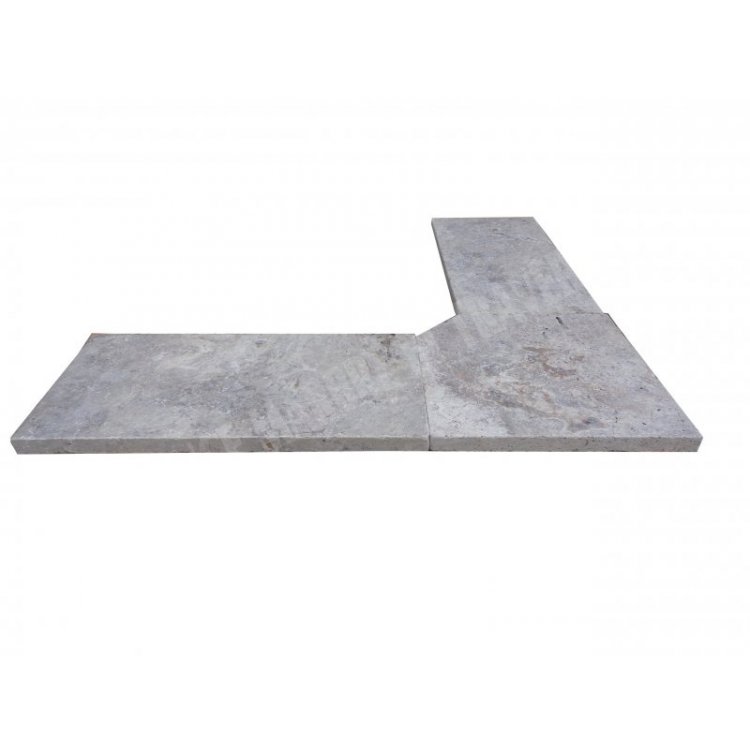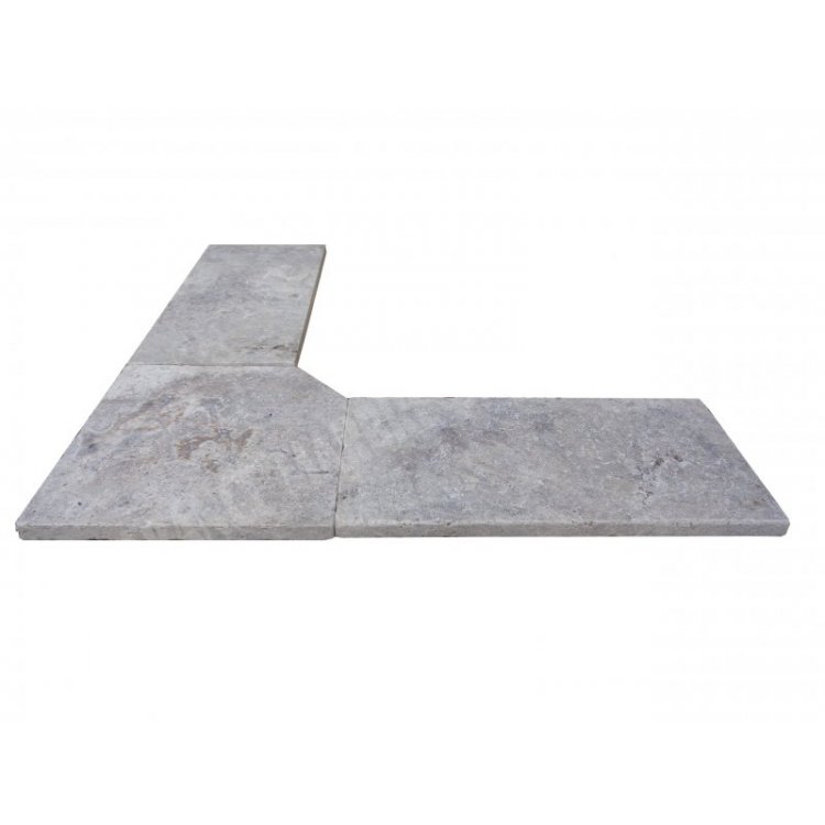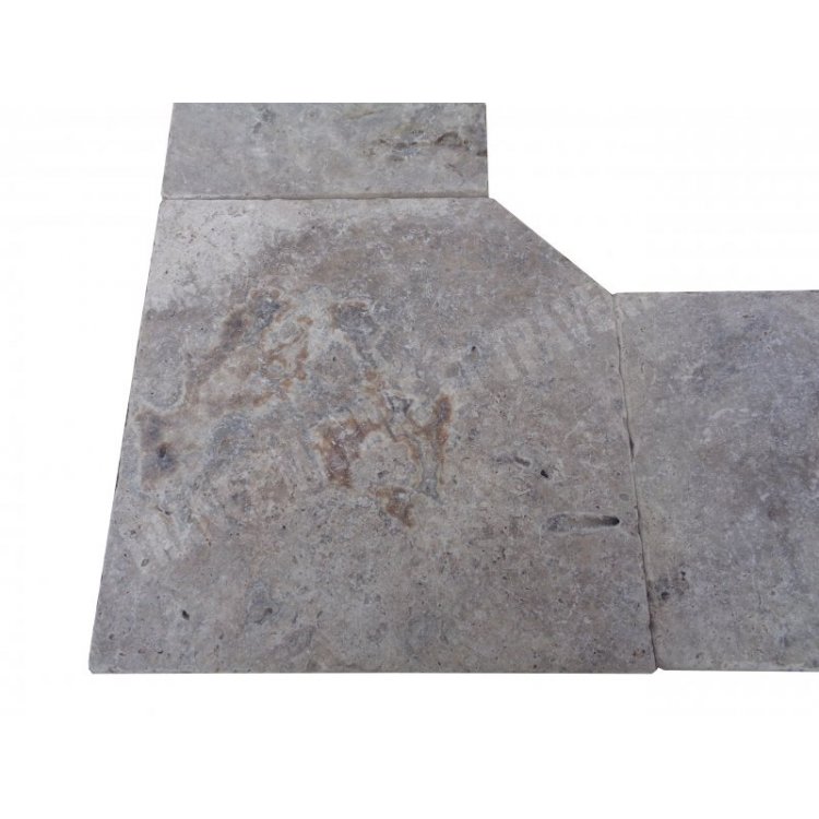 Travertin Gris Silver Margelle de Piscine Angle Rentrant 40,6x40,6 cm