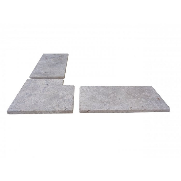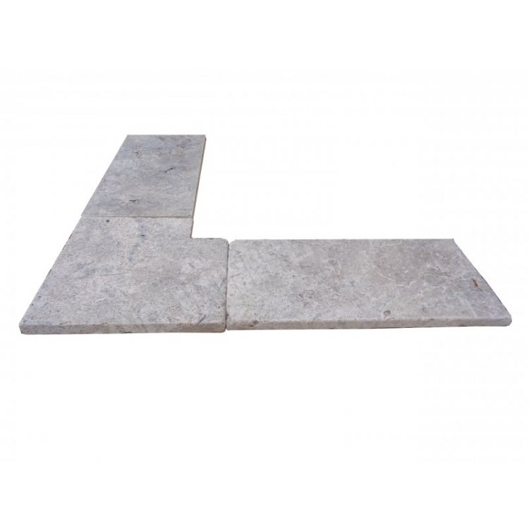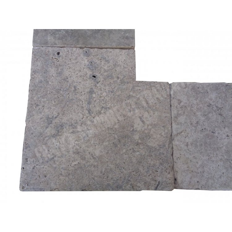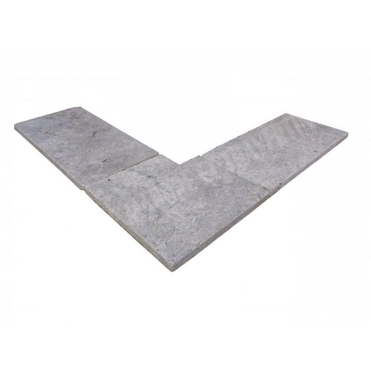 Travertin Gris Silver Margelle de Piscine Angle Rentrant 40,6x40,6 cm