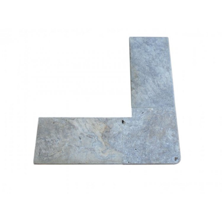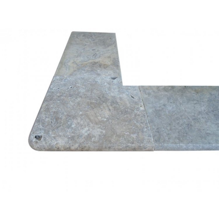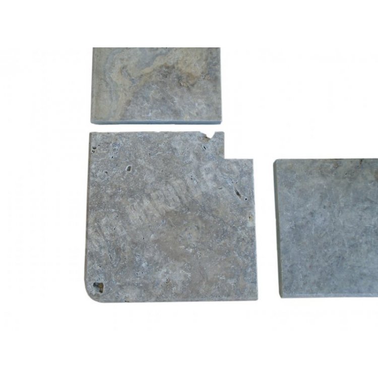 Travertin Gris Silver Margelle de Piscine Angle Sortant 40,6x40,6 cm