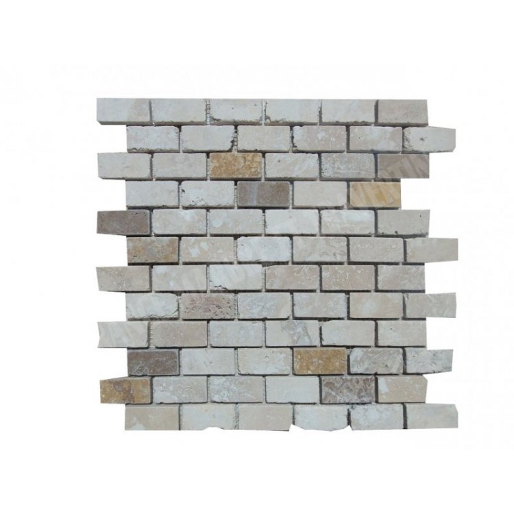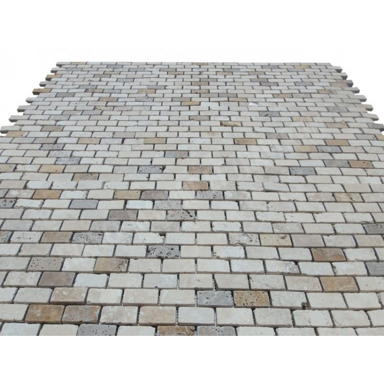 Travertin Couleur Mixte Rebouché Mosaïque 2,3x4,8 cm