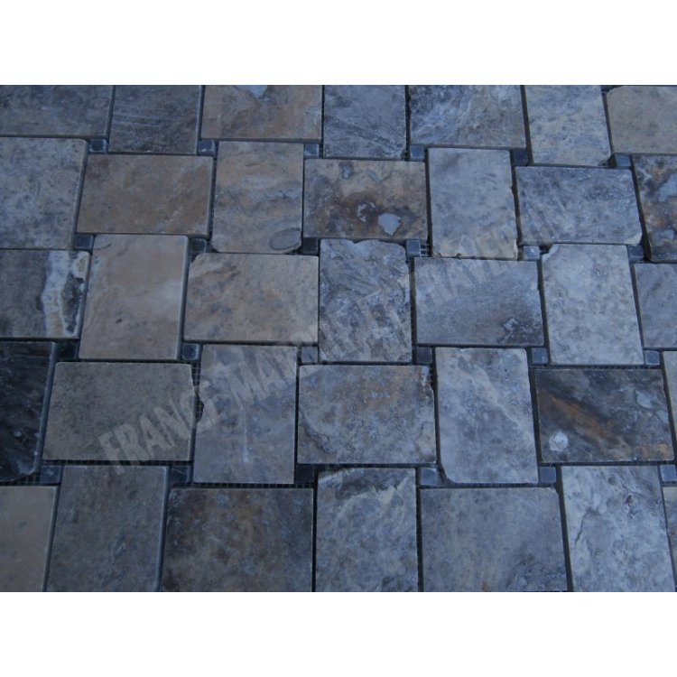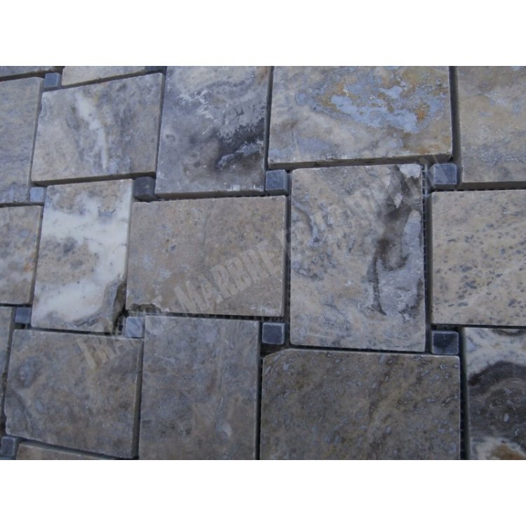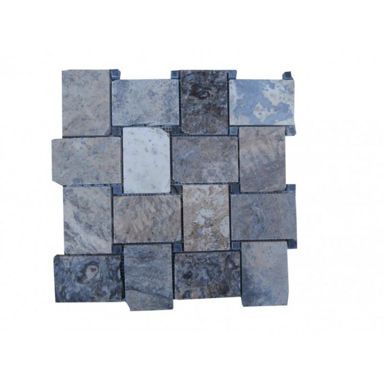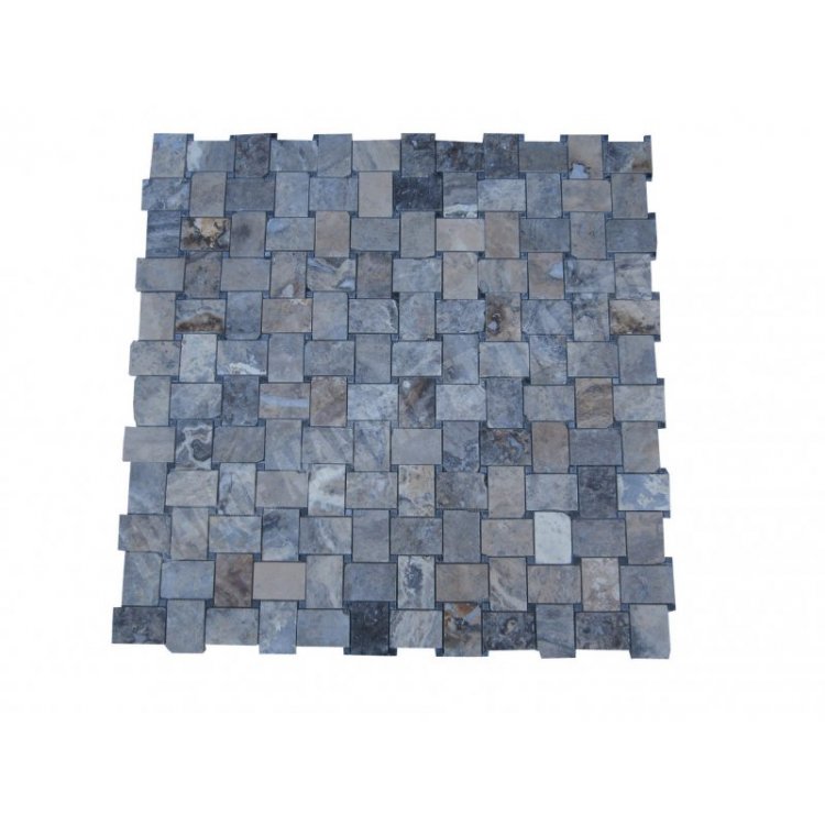Travertin Gris & Silver Mosaïque Modèle Basketwave